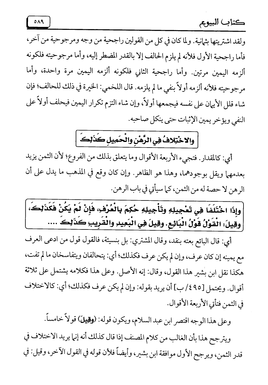 والاختلاف في الرهن والحميل كذلك