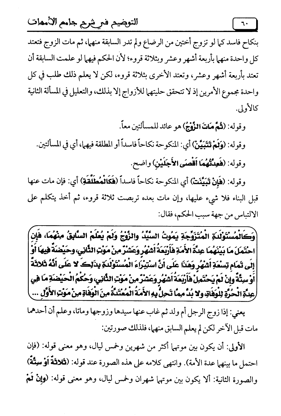 الأولى: أن يكون بين موتهما أكثر من شهرين وخمس ليال، وهو معنى قوله: (فإن احتمل ما بينهما عدة الأمة). وانتهى كلامه على هذه الصورة عند قوله: (ثَلاثَةٌ أَوْ سِتَّةٌ) والصورة الثانية: ألا يكون بين موتهما شهران وخمس ليال، وهو معنى قوله: (وإِنْ لَمْ