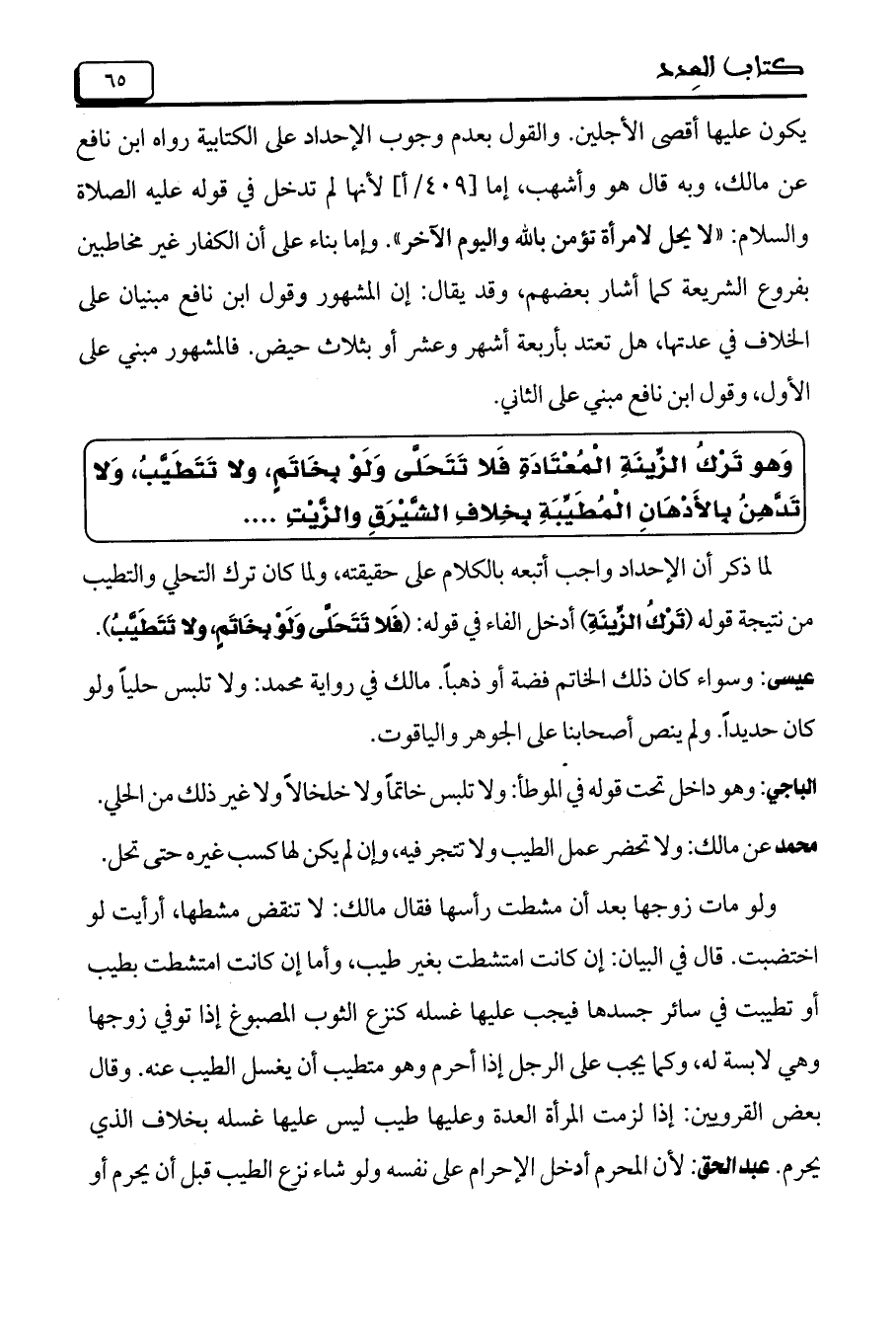 الباجي: وهو داخل تحت قوله في الموطأ: ولا تلبس خاتماً ولا خلخالاً ولا غير ذلك من الحلي.