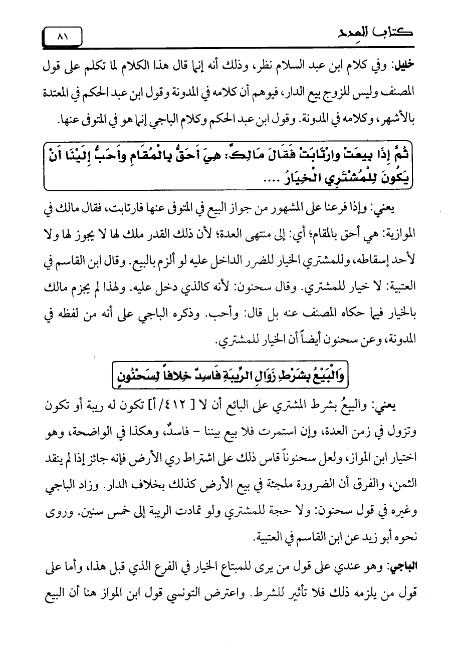 خليل: وفي كلام ابن عبد السلام نظر، وذلك أنه إنما قال هذا الكلام لما تكلم على قول المصنف وليس للزواج بيع الدار، فيوهم أن كلامه في المدونة وقول ابن عبد الحكم في المعتدة بالأشهر، وكلامه في المدونة. وقول ابن عبد الحكم وكلام الباجي إنما هو في المتوفى عنها.