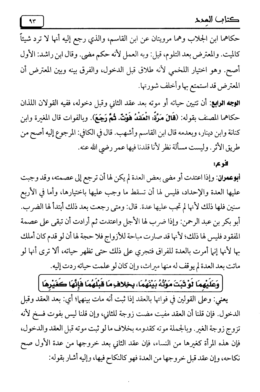 الوجه الرابع: أن تتبين حياته أو موته بعد عقد الثاني وقبل دخوله، ففيه القولان اللذان حكاهما المصنف بقوله: (قَالَ مَرَّةً: الْعَقْدُ فَوْتٌ. ثُمَّ رَجَعَ). وبالفوات قال المغيرة وابن كنانة وابن دينار، وبعدمه قال ابن القاسم وأشهب. قال في الكافي: المرجوع إليه أصح من طريق الأثر. وليست مسألة نظر لأنا قلدنا فيها عمر رضي الله عنه.