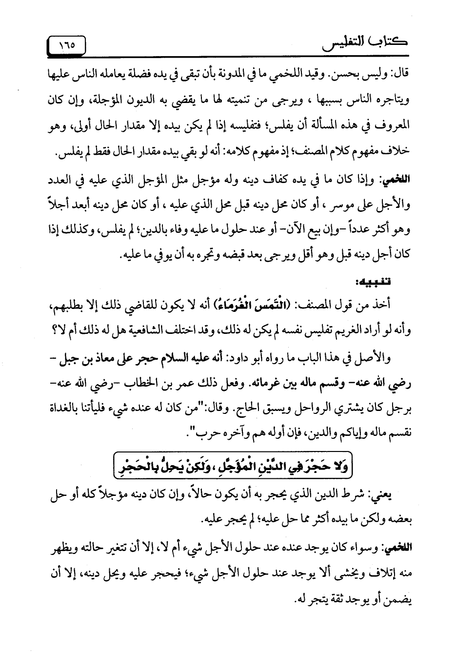وَلا حَجْرَ فِي الدَّيْنِ الْمُؤَجَّلِ، وَلَكِنْ يَحِلُّ بِالْحَجْرِ