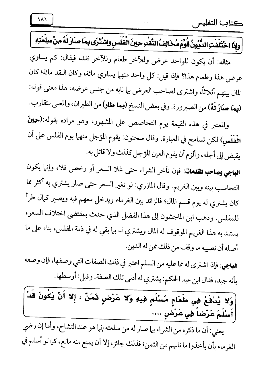 وَلا يُدْفَعُ فِي طَعَامٍ مُسْلَمٍ فِيهِ وَلا عَرْضٍ ثَمَنٌ، إِلا أَنْ يَكُونَ قَدْ أَسْلَمَ عَرْضاً فِي عَرْضٍ ....