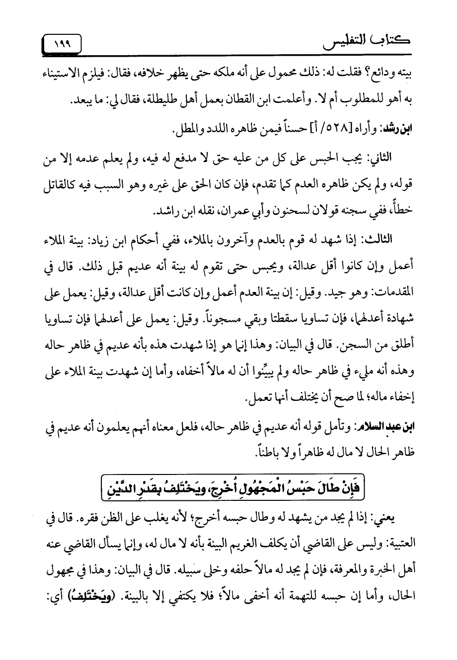 ابن عبد السلام: وتأمل قوله أنه عديم في ظاهر حاله، فلعل معناه أنهم يعلمون أنه عديم في ظاهر الحال لا مال له ظاهراً ولا باطناً.