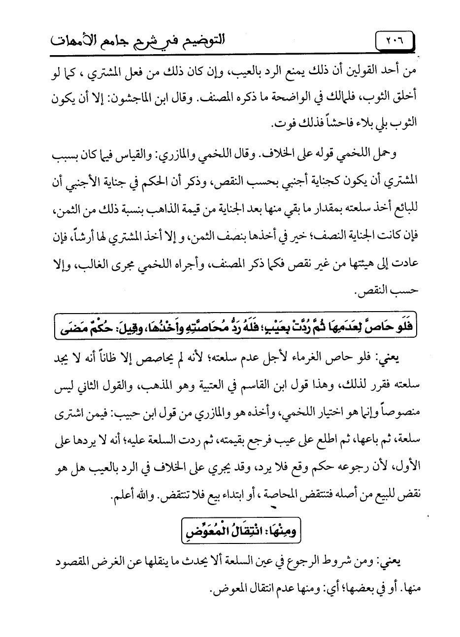 يعني: شروط الرجوع في عين السلعة ألا يحدث ما ينقلها عن الغرض المقصود منها. أو في بعضها؛ أي: ومنها عدم انتقال المعوض.