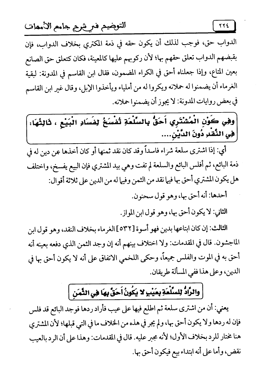 والرَّادُّ لِلسِّلْعَةِ بِعَيْبٍ لا يَكُونُ أَحَقَّ بِهَا فِي الثَّمَنِ
