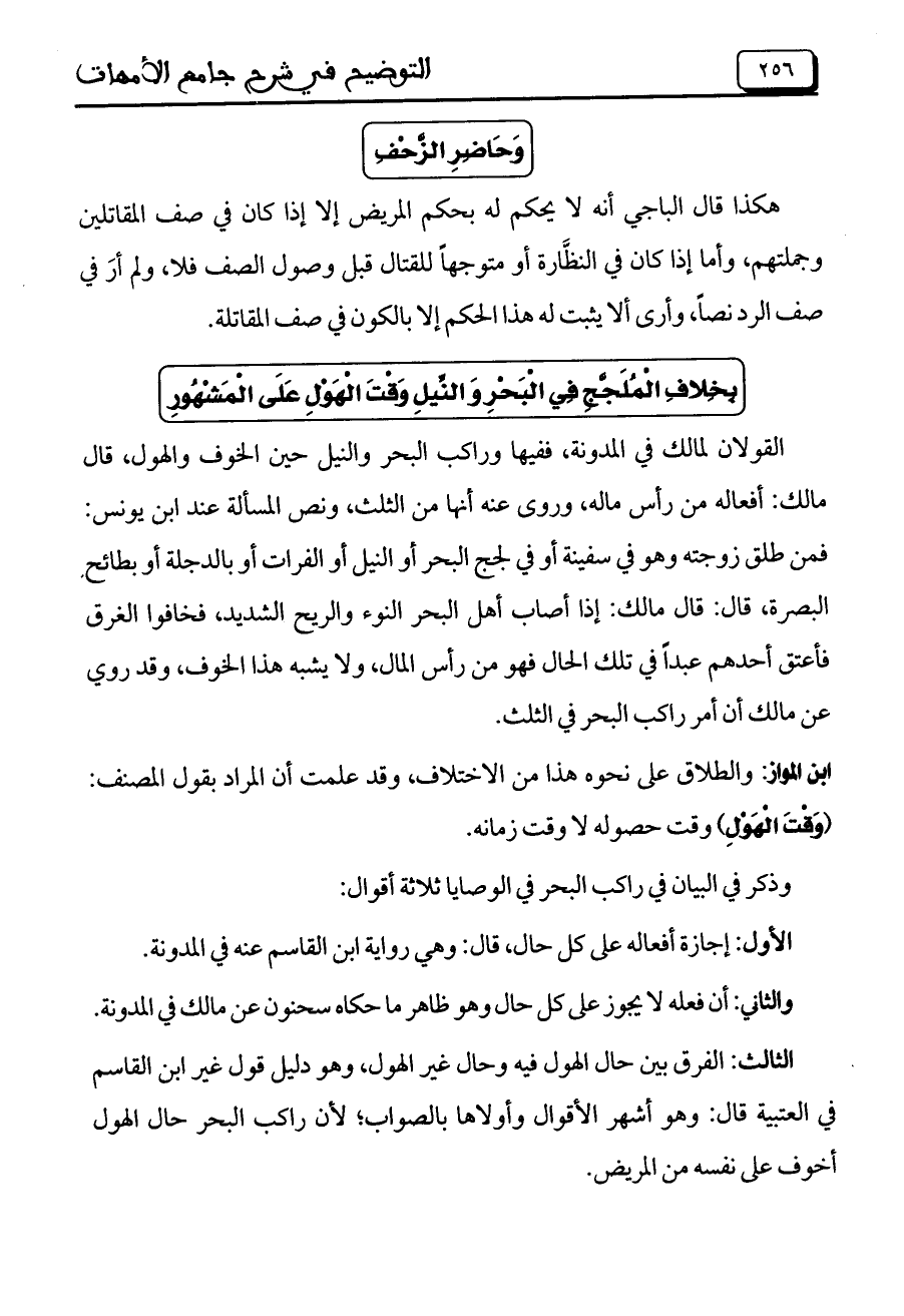 القولان لمالك في المدونة، ففيها وراكب البحر والنيل حين الخوف والهول، قال مالك، أفعاله من رأس ماله، وروى عنه أنها من الثلث، ونص المسألة عند ابن يونس: فمن طلق زوجته وهو في سفينة أو في لجج البحر أو النيل أو الفرات أو بالدجلة أو بطائح البصرة، قال: قال مالك: إذا أصاب أهل البحر النوء والريح الشديد، فخافوا الغرق فأعتق أحدهم عبداً في تلك الحال فهو من رأس المال، ولا يشبه هذا الخوف، وقد روي عن مالك أن أمر راكب البحر في الثلث.