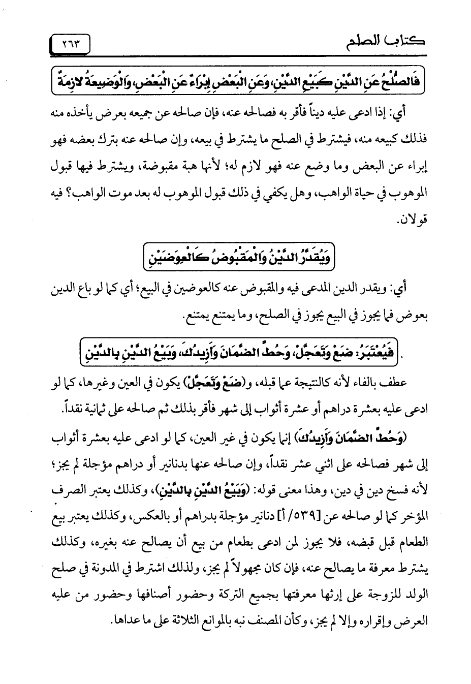 فَالصُّلْحُ عَنِ الدَّيْنِ كَبَيْعِ الدَّيْنِ، وَعَنِ الْبَعْضِ إِبْرَاءٌ عَنِ الْبَعْضِ، وَالْوَضِيعَةُ لازِمَةٌ