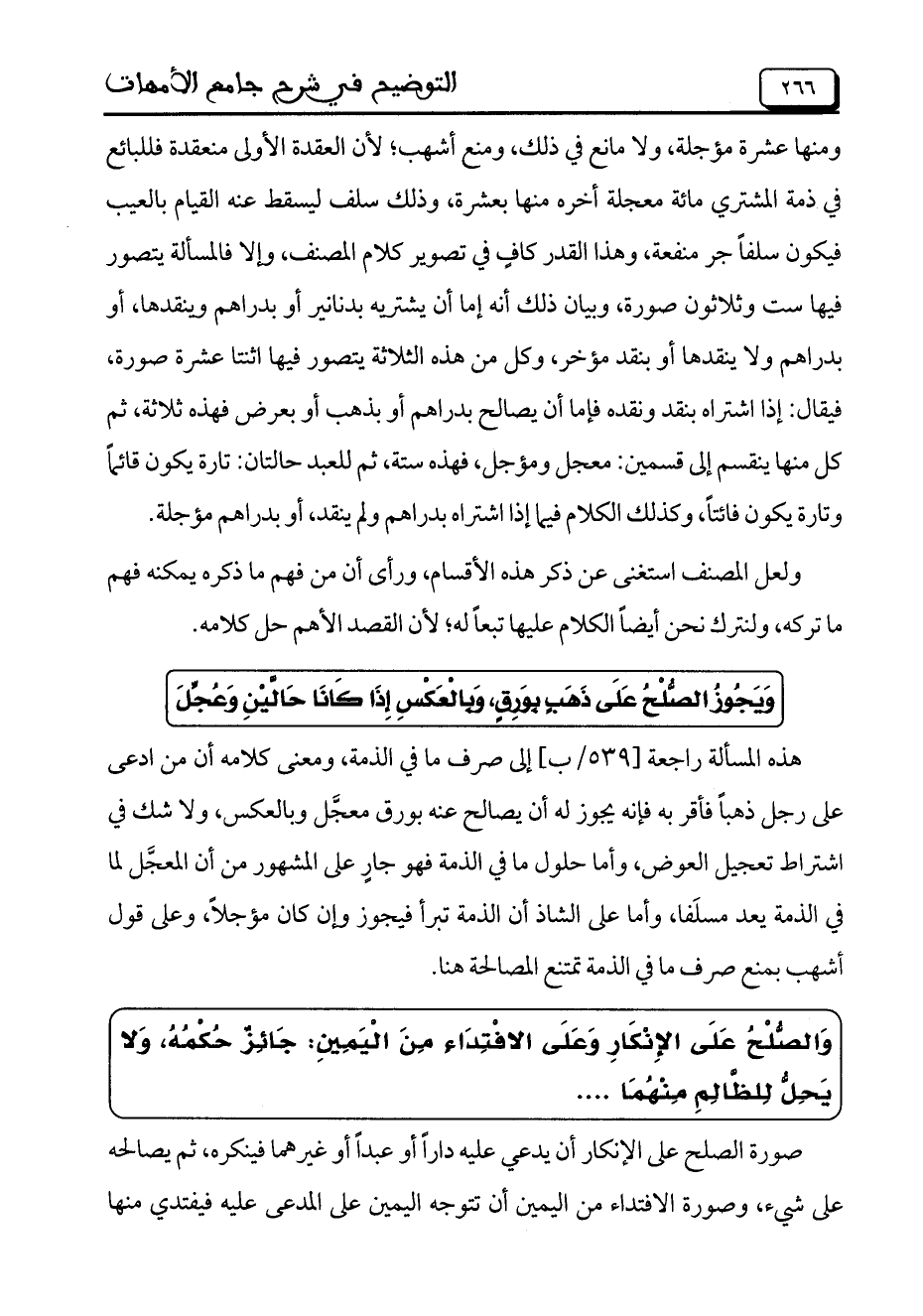 وَالصُّلْحُ عَلَى الإَنْكَارِ وَعَلَى الافْتِدَاءِ مِنَ الْيَمِينِ: جَائِزٌ حُكْمُهُ، وَلا يَحِلُّ لِلظَّالِمِ مِنْهُمَا ....