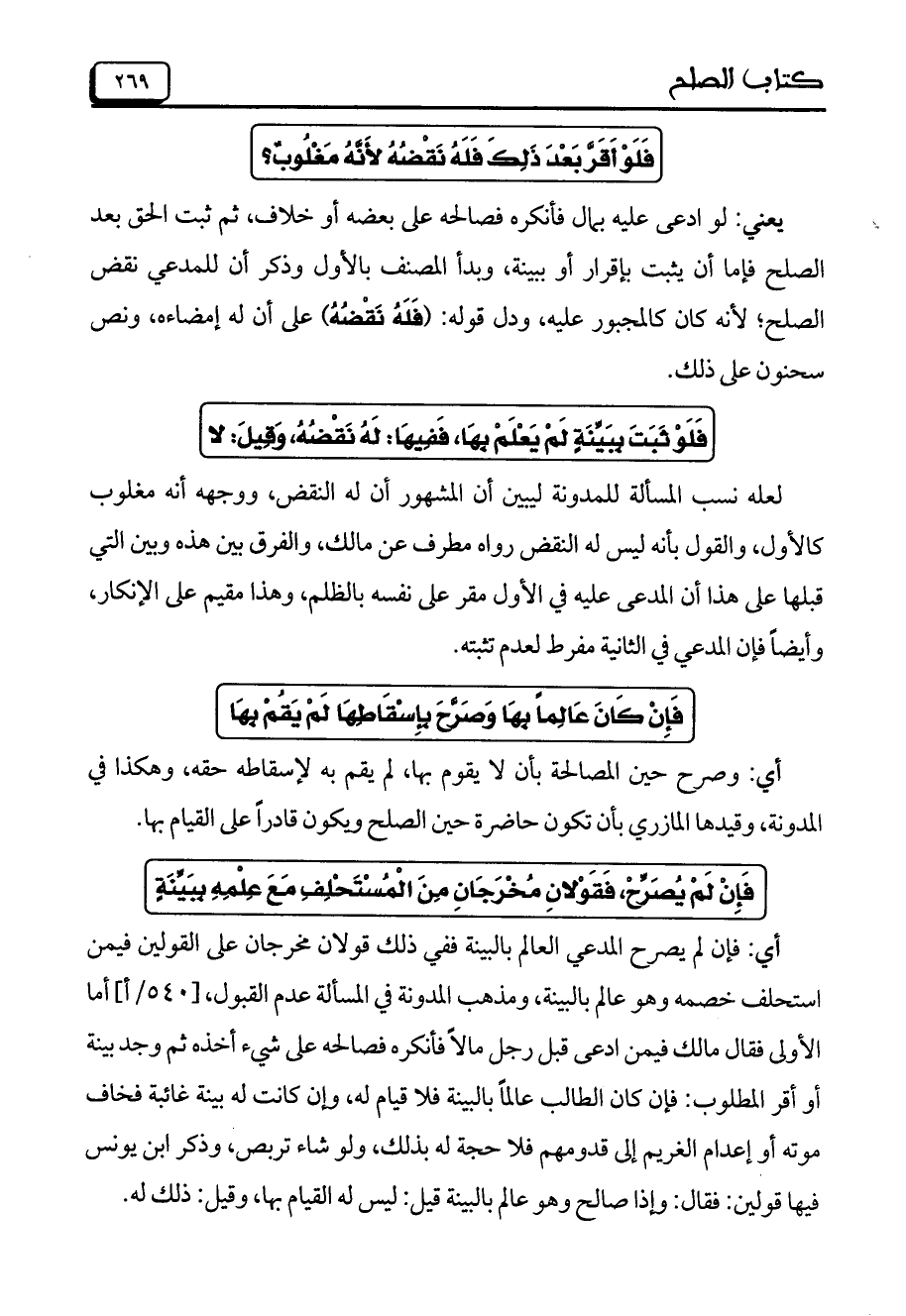 أي: فإن لم يصرح المدعي العالم بالبينة ففي ذلك قولان مخرجان على القولين فيمن استحلف خصمه وهو عالم بالبينة، ومذهب المدونة في المسألة عدم القبول، [540/أ] أما الأولى فقال مالك فيمن ادعى قبل رجل مالاً فأنكره فصالحه على شيء أخذه ثم وجد بينة أو أقر المطلوب: فإن كان الطالب عالماً بالبينة فلا قيام له، وإن كانت له بينة غائبة فخاف موته أو إعدام الغريم إلى قدومهم فلا حجة له بذلك، ولو شاء تربص، وذكر ابن يونس فيها قولين: فقال: وإذا صالح وهو عالم بالبينة قيل: ليس له القيام بها، وقيل: ذلك له.