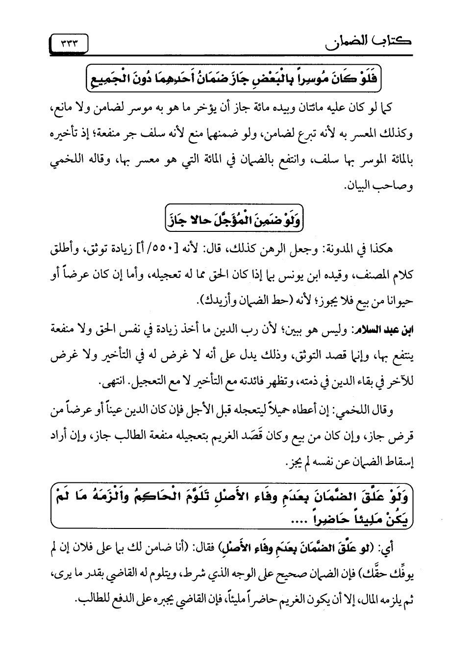 وَلَوْ عَلَّقَ الضَّمَانَ بِعَدَمِ وفَاء الأَصْلِ تَلَوَّمَ الْحَاكِمُ وأَلْزَمَهُ مَا لَمْ يَكُنْ مَلِيئاً حَاضِراً ....
