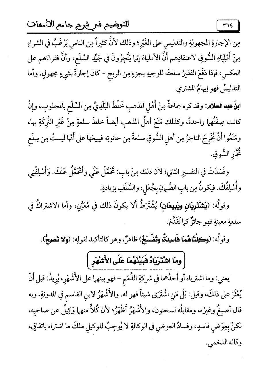 من الإجارة المجهولة والتدليس على الغير؛ وذلك لأن كثيراً من الناس يرغب في الشراء من أملياء السوق لاعتقادهم أن الأملياء إنما يتجرون في جيد السلع، وأن فقراءهم على العكس، فإذا دفع الفقير سلعته للوجيه بجزء من الربح - كان إجارة بشيء مجهول، وأما التدليس فهو إيهام المشتري.