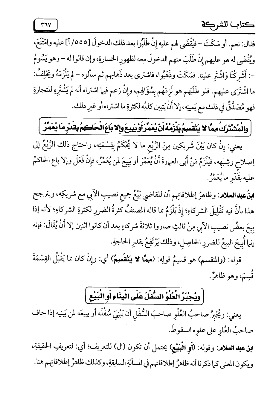 والْمُشْتَرَكُ مِمَّا لا يِنْقَسِمُ يَلْزَمُهُ أَنْ يُعَمِّرَ أَوْ يَبِيعَ وإِلا بَاعَ الْحَاكِمُ بِقَدْرِ مَا يُعَمِّرُ