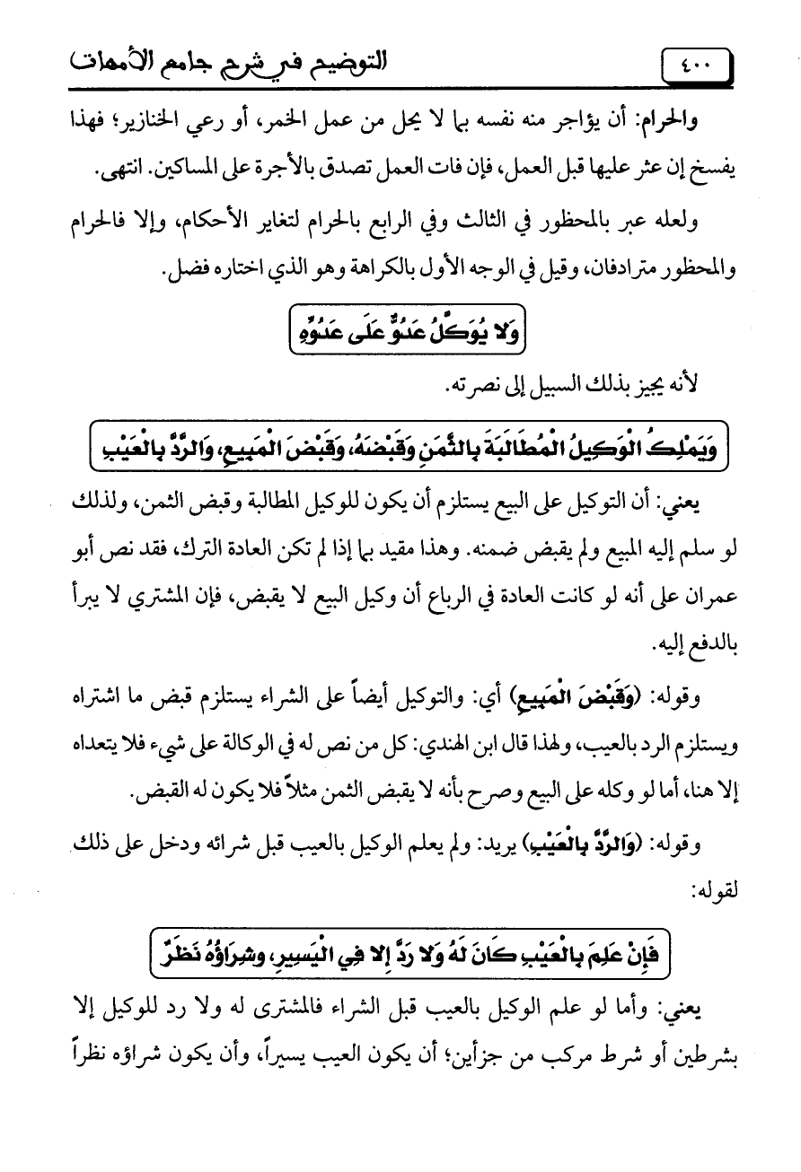 وقوله: (وَالرَّدَّ بِالْعَيْبِ) يريد: ولم يعلم الوكيل بالعيب قبل شرائه ودخل على ذلك لقوله: