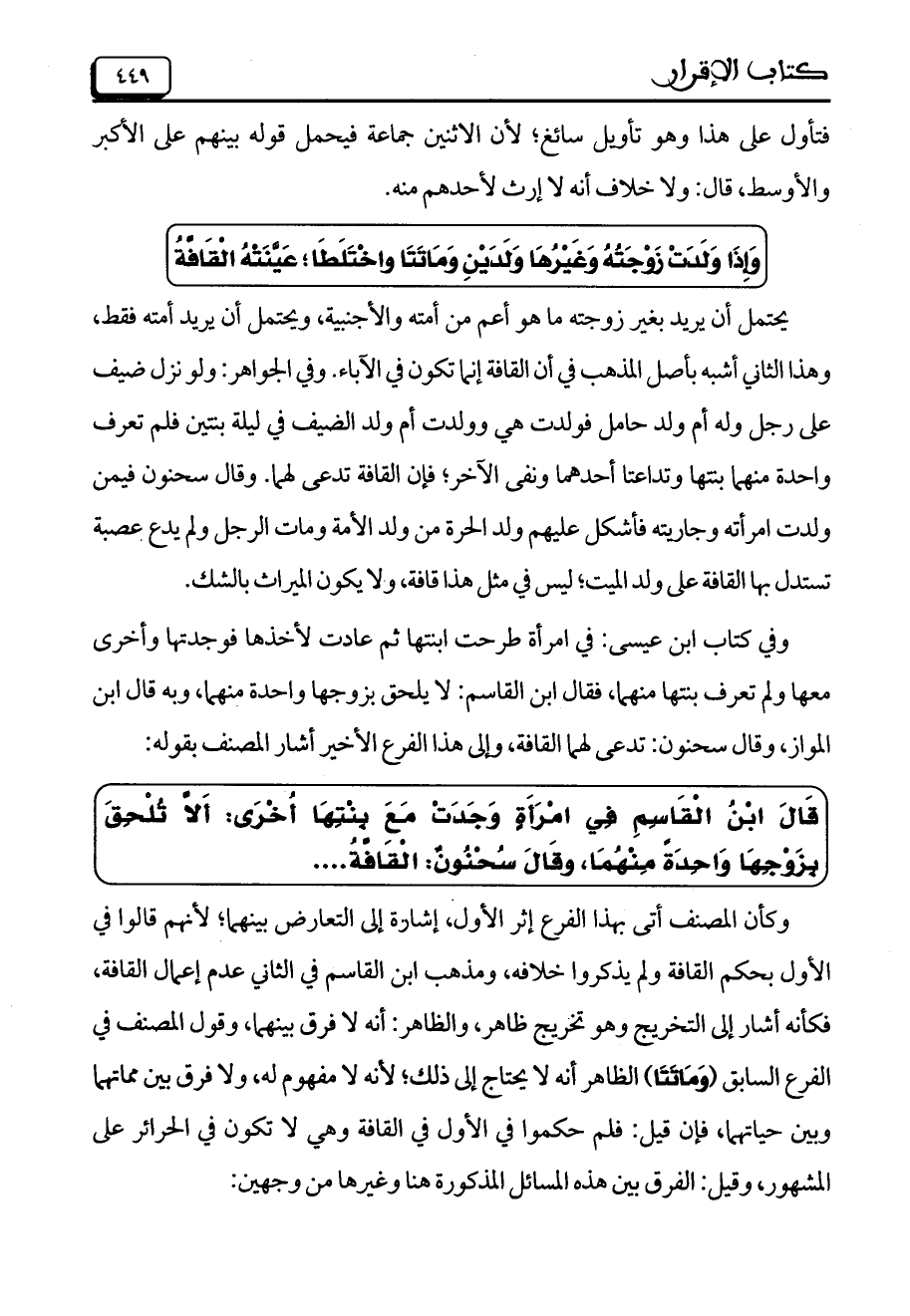 قَالَ ابْنُ الْقَاسِمِ فِي امْرَأَةٍ وَجَدَتْ مَعَ بِنْتِهَا أُخْرَى: أَلاَّ تُلْحِقَ بِزَوْجِهَا وَاحِدَةً مِنْهُمَا، وقَالَ سُحْنُونٌ: الْقَافَّةُ ...