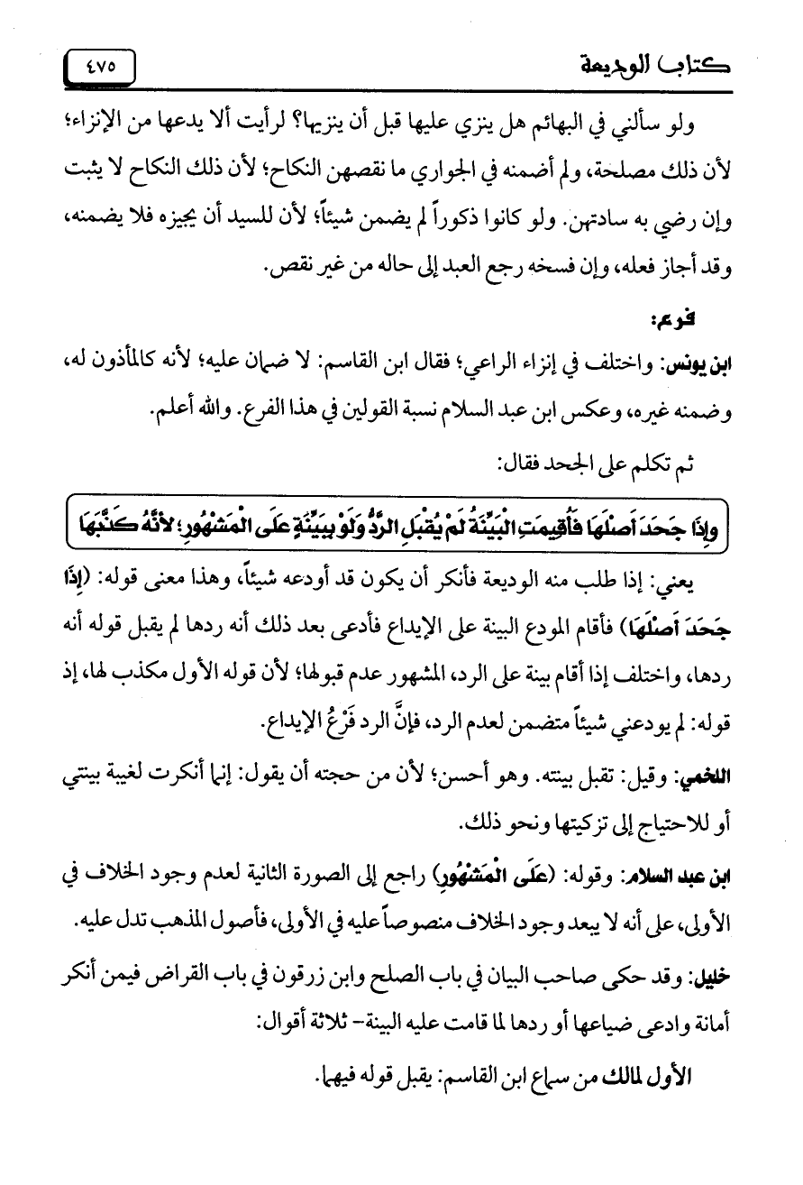ابن عبد السلام: وقوله: (عَلَى الْمَشْهُورِ) راجع إلى الصورة الثانية لعدم وجود الخلاف في الأولى، على أنه لا يبعد وجود الخلاف منصوصاً عليه في الأولى، فأصول المذهب تدل عليه.