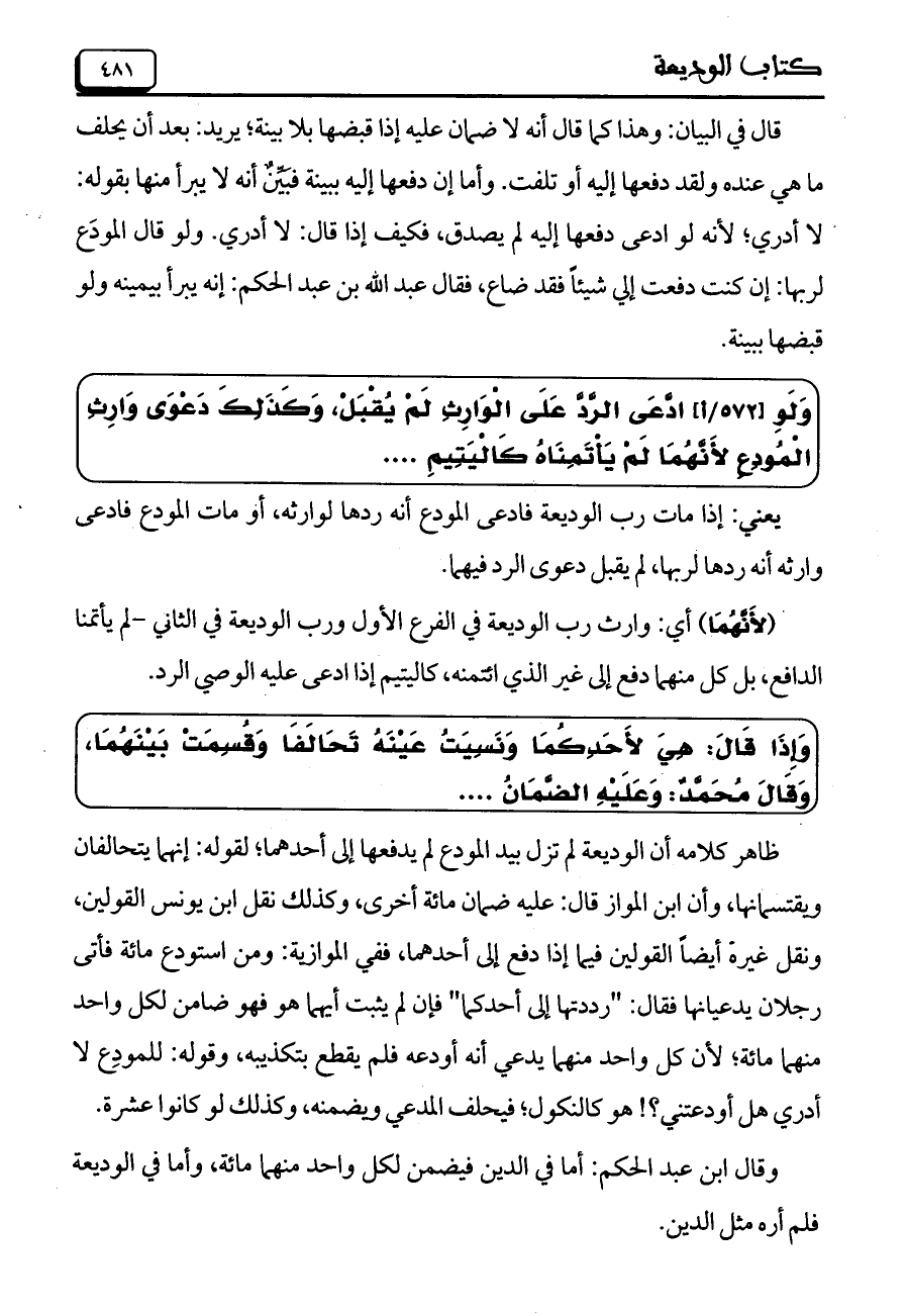 قال في البيان: وهذا كما قال أنه لا ضمان عليه إذا قبضها بلا بينة؛ يريد: بعد أن يحلف ما هي عنده ولقد دفعها إليه أو تلفت. وأما إن دفعها إليه ببينة فبَيِّنٌ أنه لا يبرأ منها بقوله: لا أدري؛ لأنه لو ادعى دفعها إليه لم يصدق، فكيف إذا قال: لا أدري. ولو قال المودَع لربها: إن كنت دفعت إلي شيئاً فقد ضاع، فقال عبد الله بن عبد الحكم: إنه يبرأ بيمينه ولو قبضها ببينة.