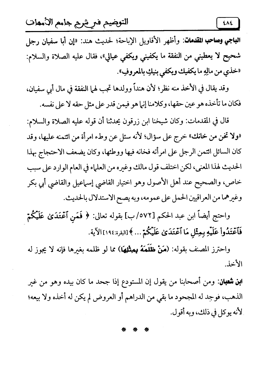 واحتج أيضاً ابن عبد الحكم [572/ب] بقوله تعالى: (فَمَنِ اعْتَدَى عَلَيْكُمْ فَاعْتَدُوا عَلَيْهِ بِمِثْلِ مَا اعْتَدَى عَلَيْكُمْ ....) [البقرة: 194] الآية.