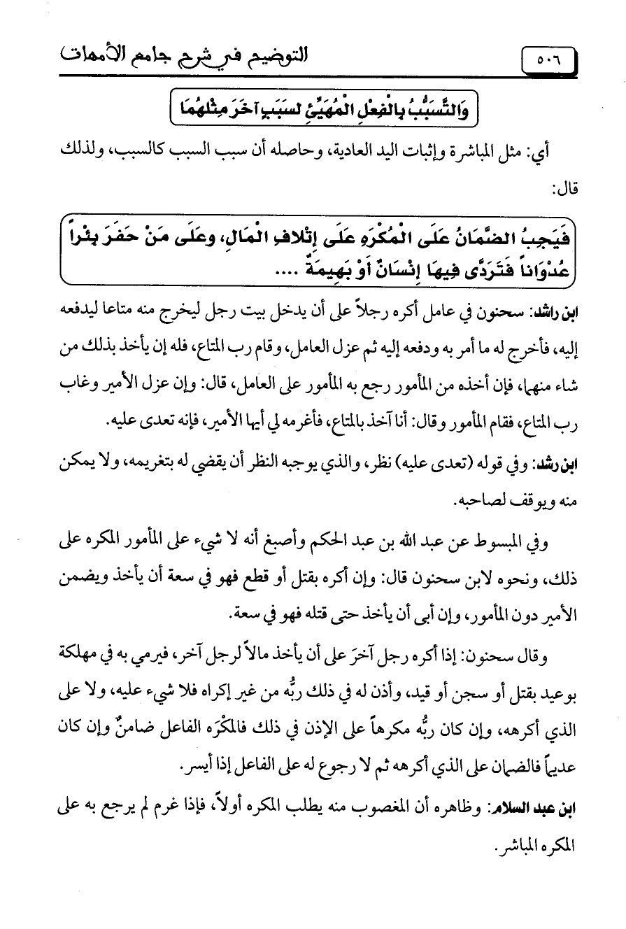 ابن عبد السلام: وظاهره أن المغصوب منه يطلب المكره أولاً، فإذا غرم لم يرجع به على المكره المباشر.