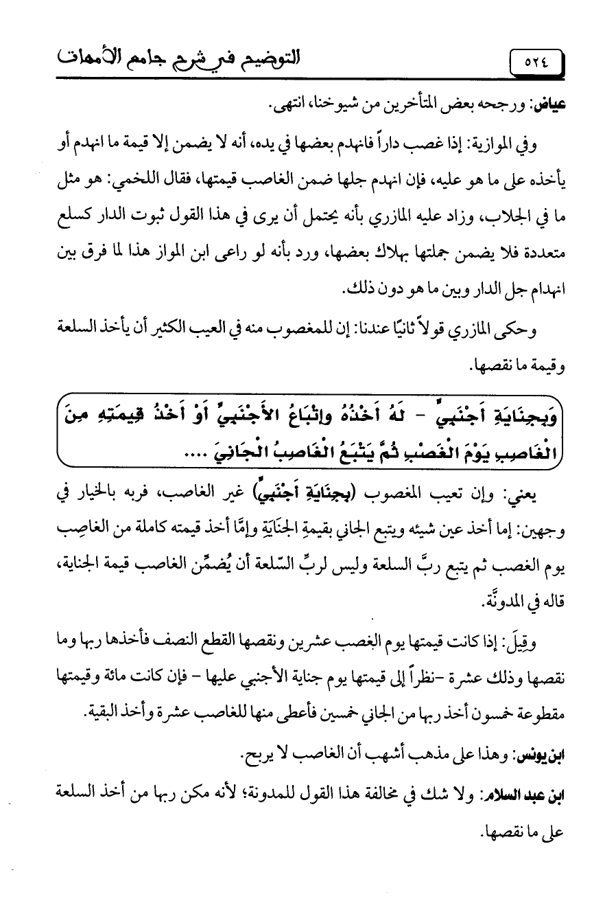 ابن عبد السلام: ولا شك في مخالفة هذا القول للمدونة؛ لأنه مكن ربها من أخذ السلعة على ما نقصها.