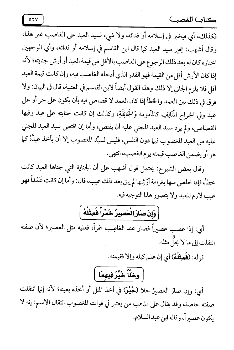 أي: إذا غصب عصيراً فصار عند الغاصب خمراً، فعليه مثل العصير؛ لأن صفته انتقلت إلى ما لا يحلُّ مثله.