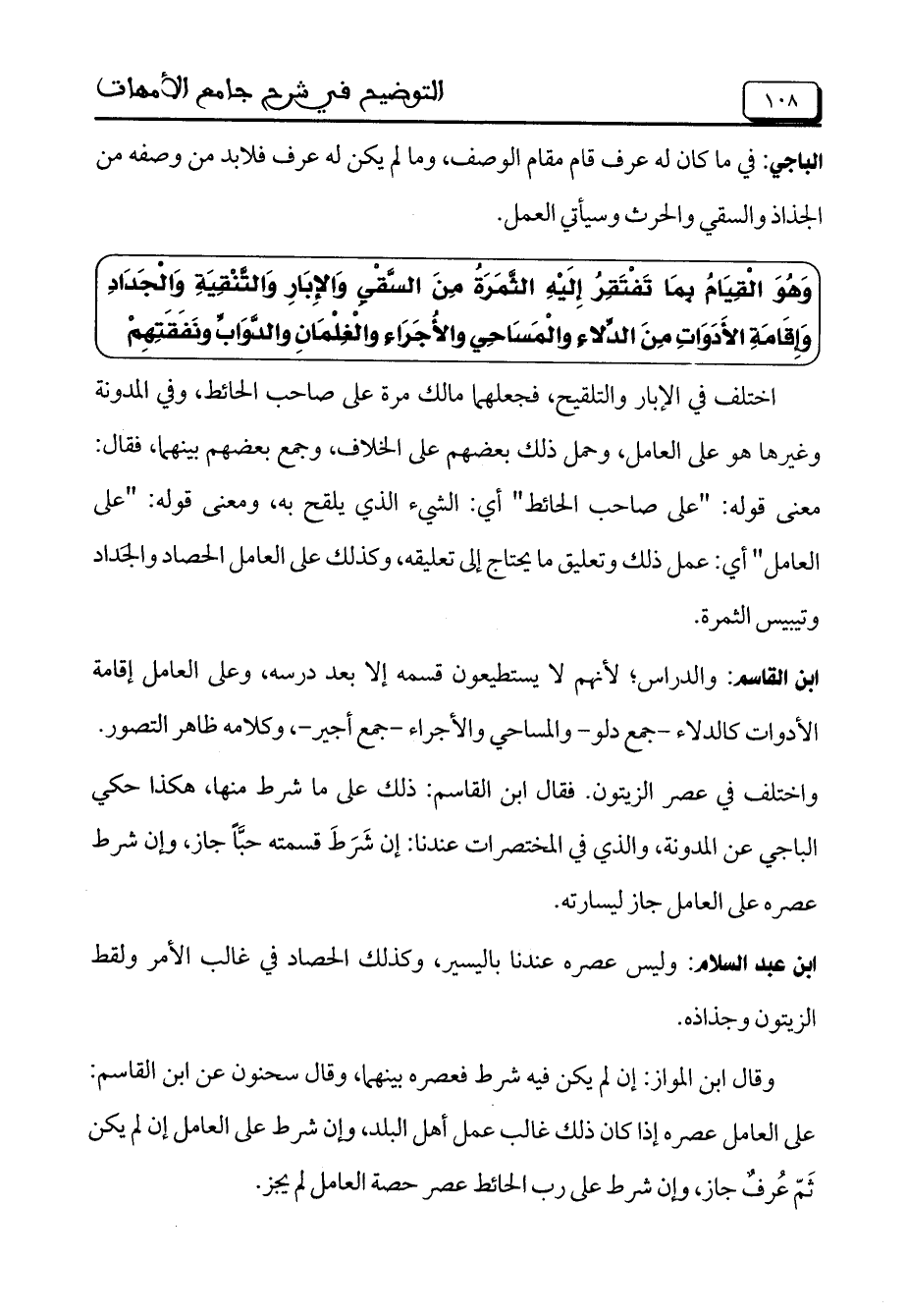 ابن عبد السلام: وليس عصره عندنا باليسير، وكذلك الحصاد في غالب الأمر ولقط الزيتون وجذاذه.