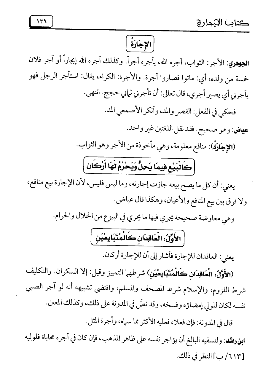 (الإِجَارَةُ): منافع معلومة، وهي مأخوذة من الأجر وهو الثواب.