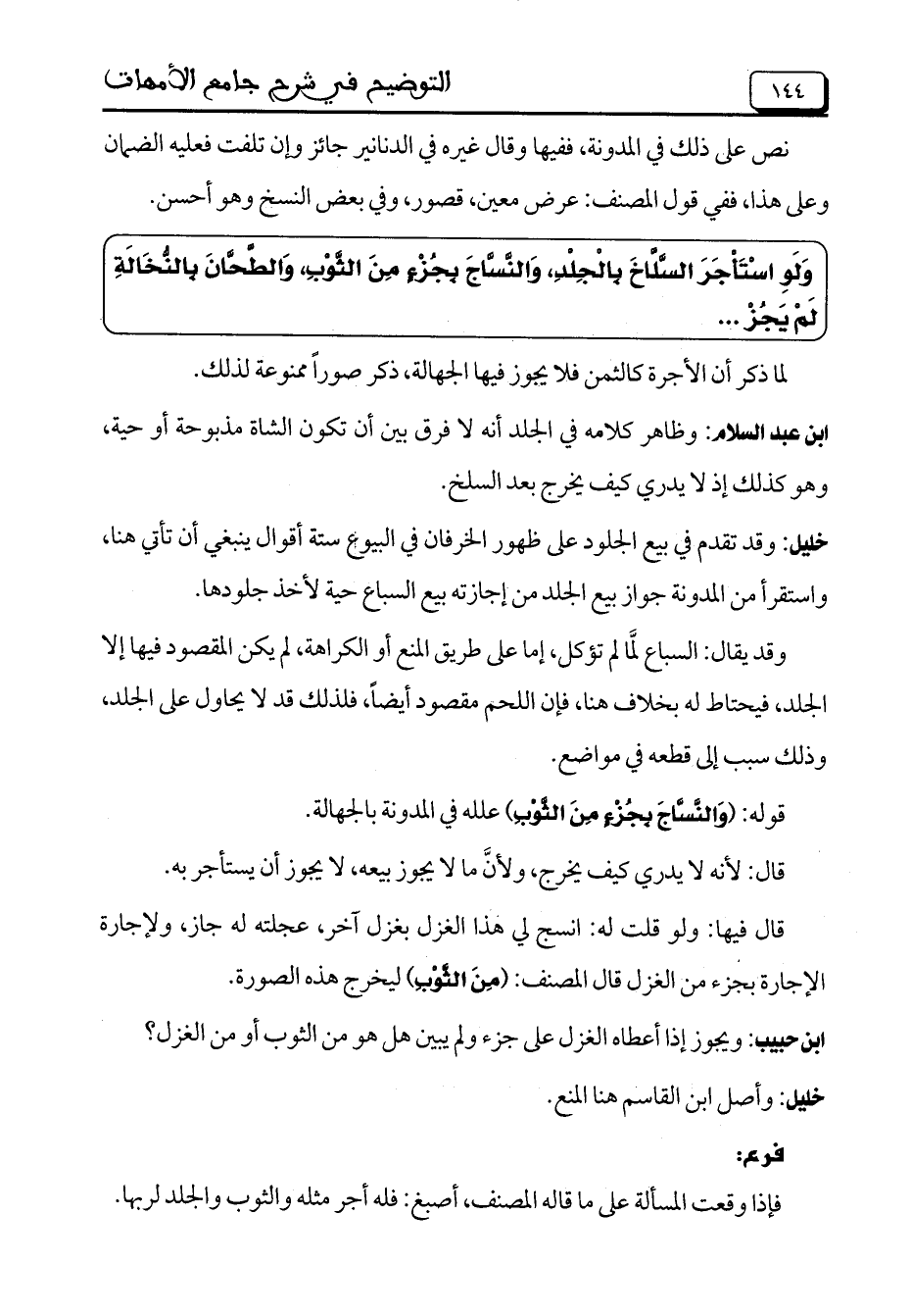 ابن حبيب: ويجوز إذا أعطاه الغزل على جزء ولم يبين هل هو من الثوب أو من الغزل؟