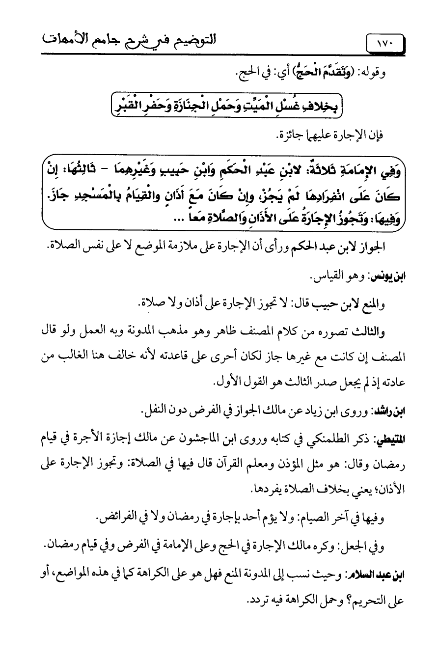 الجواز لابن عبد الحكم ورأى أن الإجارة على ملازمة الموضع لا على نفس الصلاة.
