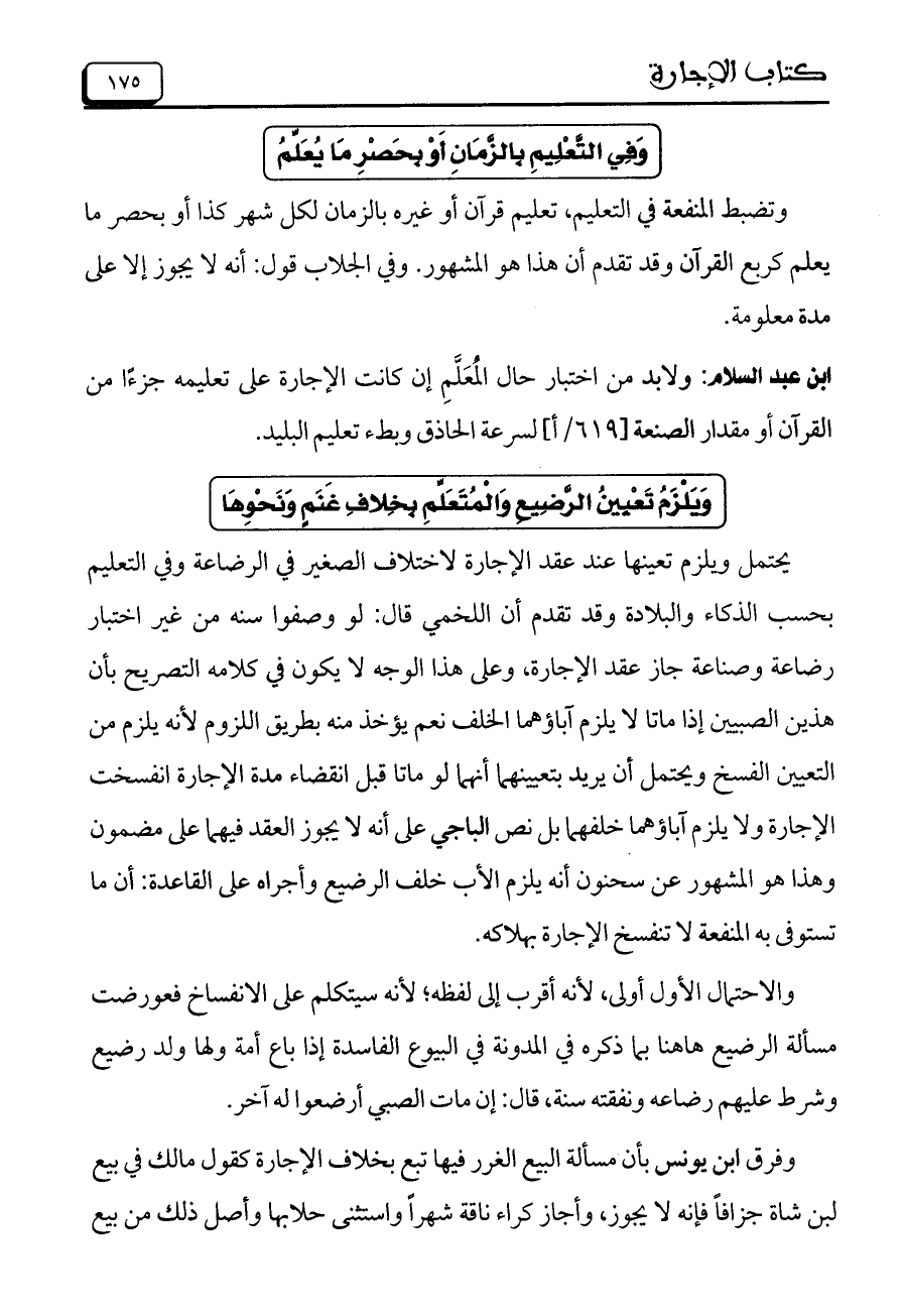 ابن عبد السلام: ولابد من اختبار حال المعلم إن كانت الإجارة على تعليمه جزءاً من القرآن أو مقدار الصنعة [619/ أ] لسرعة الحاذق وبطء تعليم البليد.