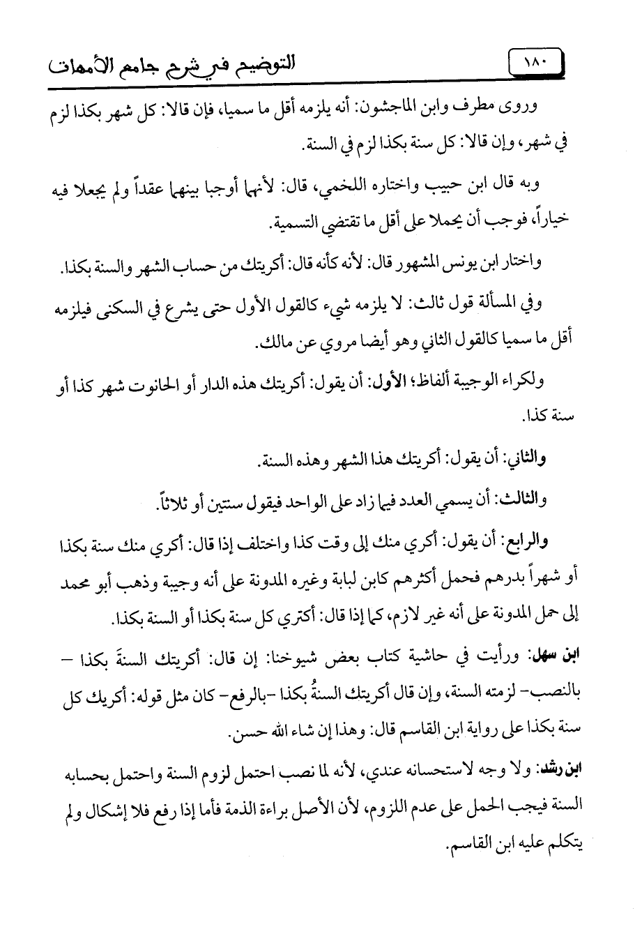 ابن رشد: ولا وجه لاستحسانه عندي، لأنه لما نصب احتمل لزوم السنة واحتمل بحسابه السنة فيجب الحمل على عدم اللزوم، لأن الأصل براءة الذمة فأما إذا رفع فلا إشكال ولم يتكلم عليه ابن القاسم.
