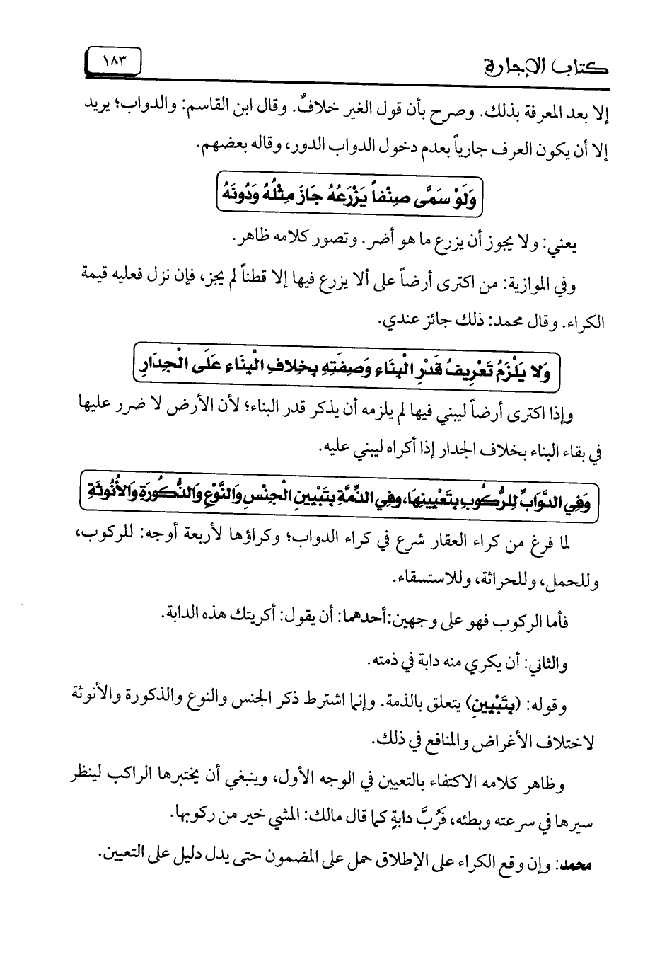 لما فرغ من كراء العقار شرع في كراء الدواب؛ وكراؤها لأربعة أوجه: للركوب، وللحمل، وللحراثة، وللاستسقاء.