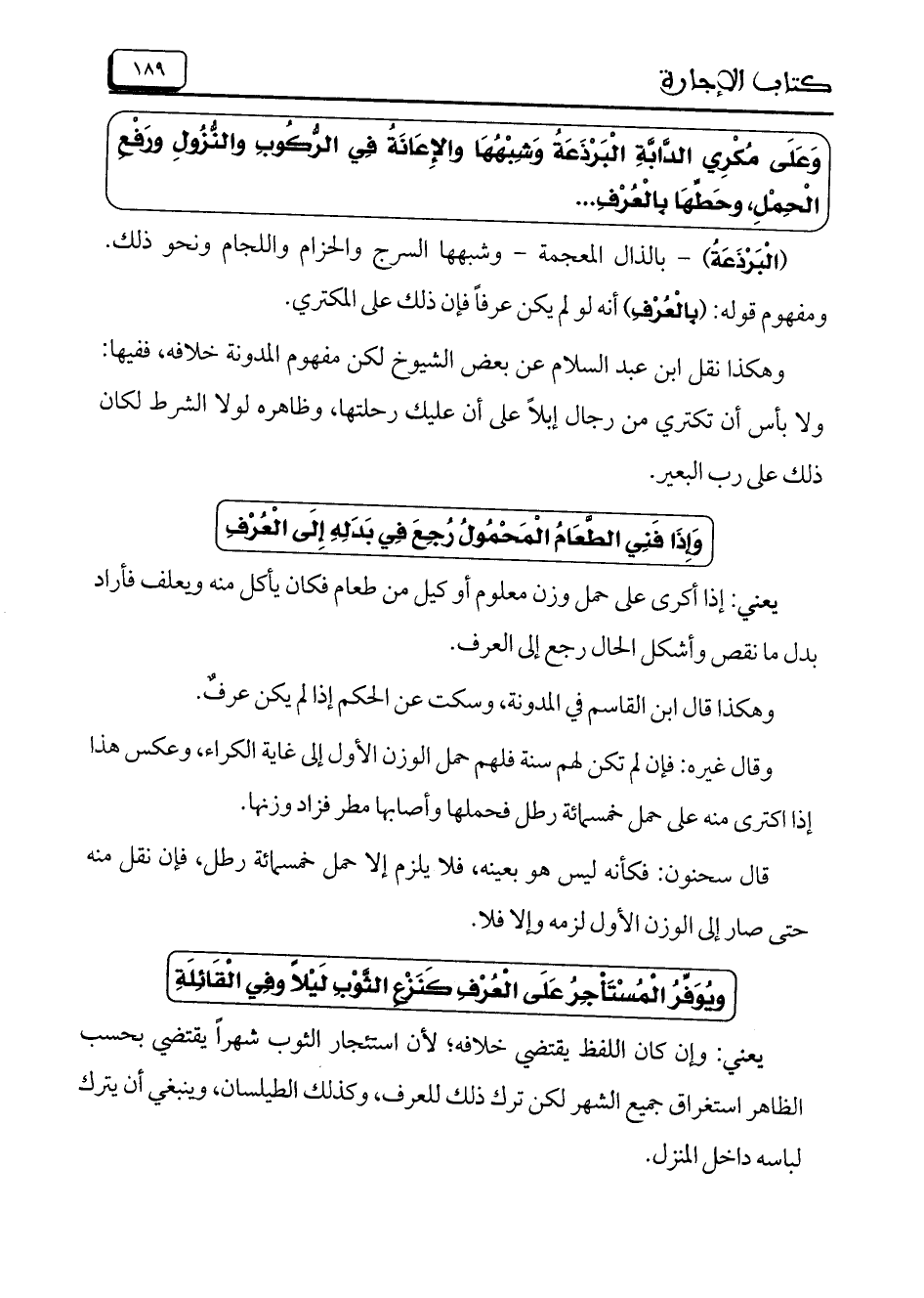 وَعَلَى مُكْرِي الدَّابَّةِ الْبَرْذَعَةُ وَشِبْهُهَا والإِعَانَةُ فِي الرُّكُوبِ وَالنُّزُولِ ورَفْعِ الْحِمْلِ، وحَطَّهَا بِالْعُرْفِ ..