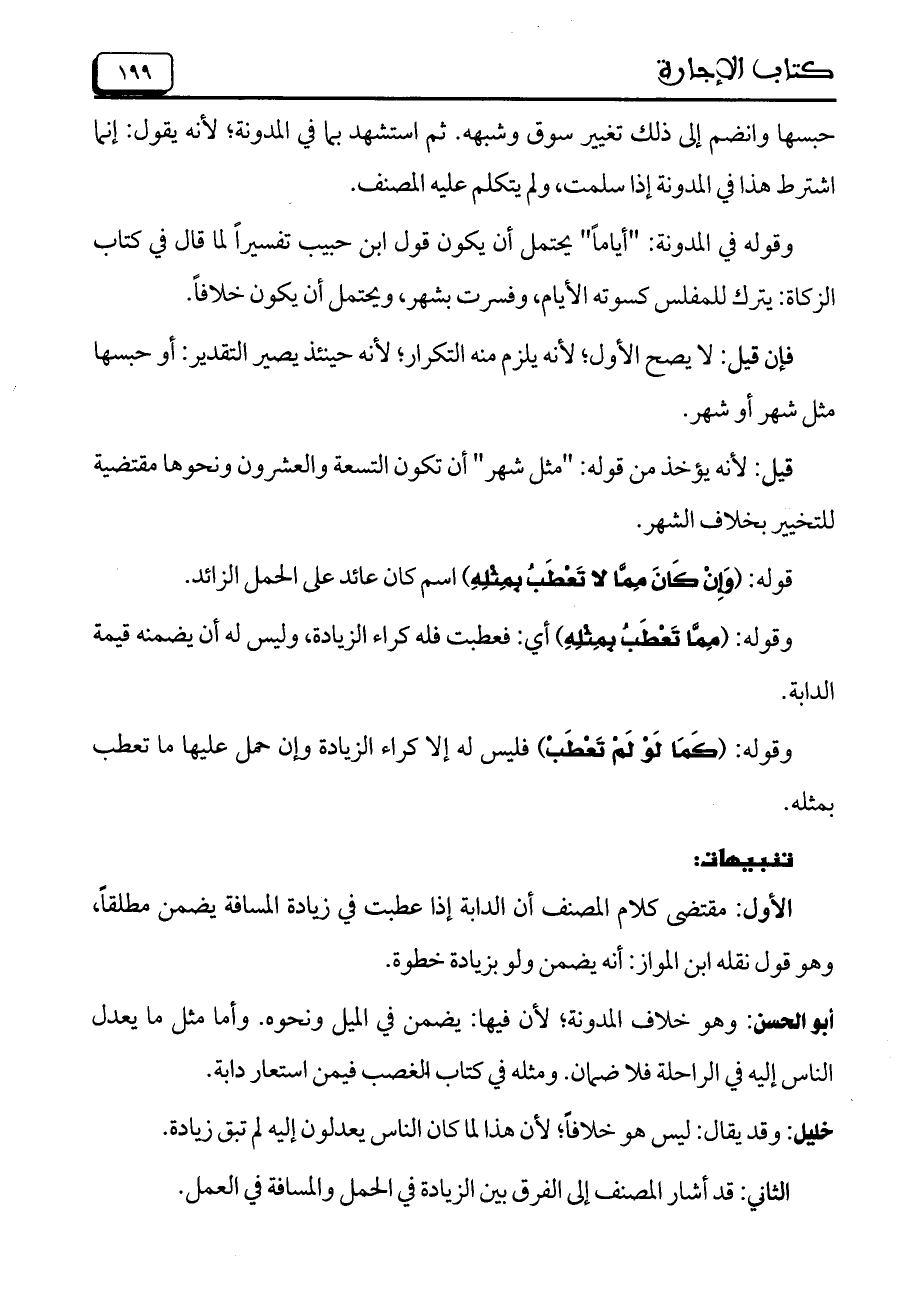 الأول: مقتضى كلام المصنف أن الدابة إذا عطبت في زيادة المسافة يضمن مطلقاً, وهو قول نقله ابن المواز: أنه يضمن ولو بزيادة خطوة.