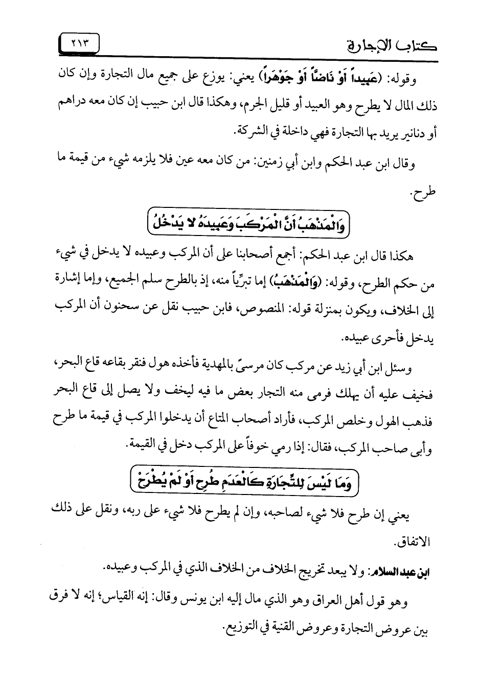 هكذا قال ابن عبد الحكم: أجمع أصحابنا على أن المركب وعبيده لا يدخل في شيء من حكم الطرح, وقوله: (وَالْمَذْهَبُ) إما تبرِّياً منه، إذ بالطرح سلم الجميع، وإما إشارة إلى الخلاف، ويكون بمنزلة قوله: المنصوص، فابن حبيب نقل عن سحنون أن المركب يدخل فأحرى عبيده.