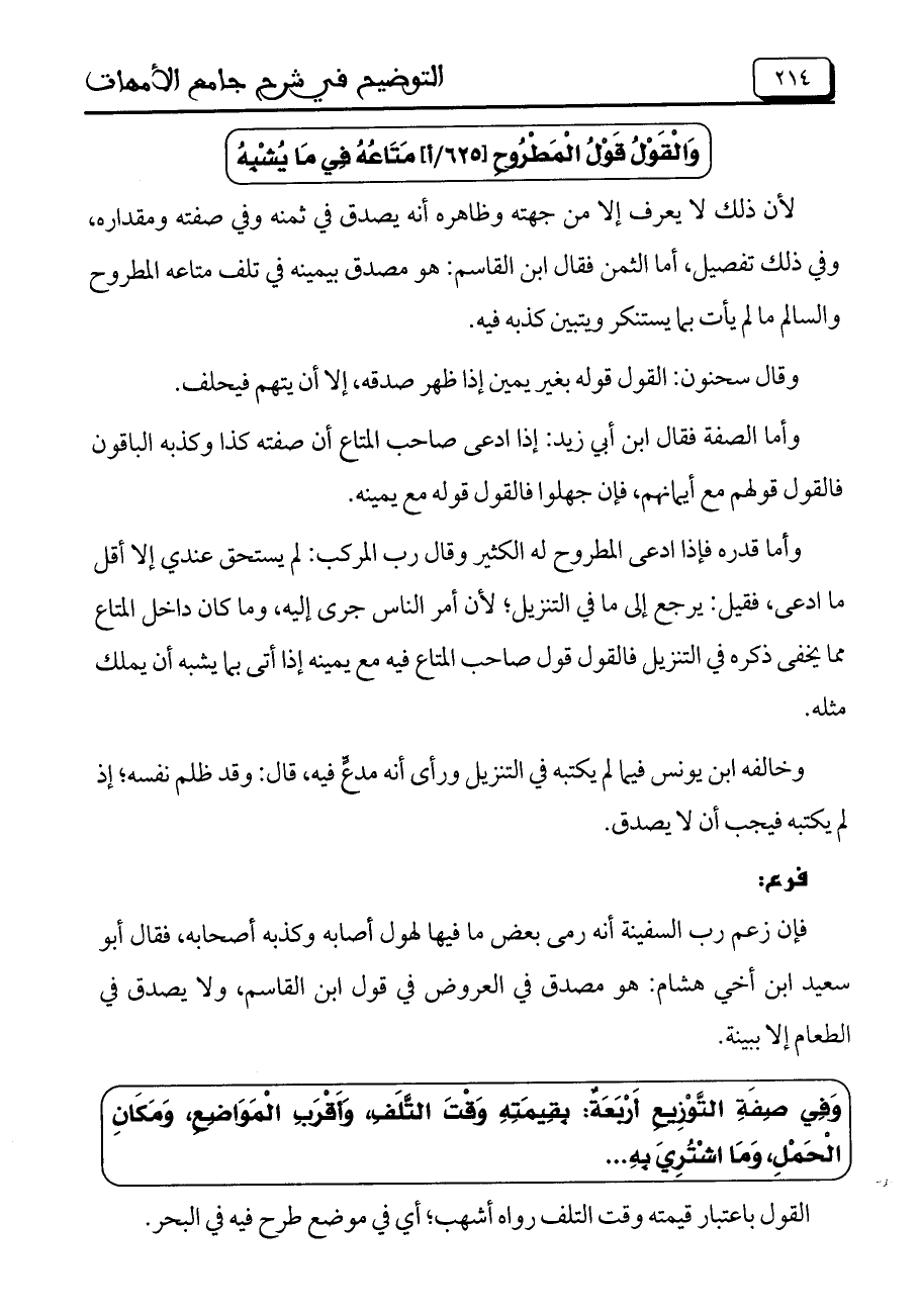 وَالْقَوْلُ قَوْلُ الْمَطْرُوحِ [625/أ] مَتَاعُهُ فِي مَا يُشْبِهُ