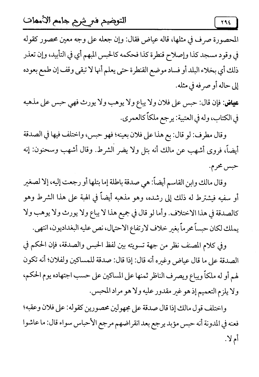 وقال مالك وابن القاسم أيضاً: هي صدقة باطلة إما بتلها أو رجعت إليه، إلا لصغير أو سفيه فيشترط له ذلك إلى رشده، وهو مذهبه أيضاً في الهبة على هذا الشرط وهو كالصدقة في هذا الاختلاف. وأما لو قال في جميع هذا لا يباع ولا يورث ولا يوهب ولا يملك لكان حبساً محرماً بغير خلاف لارتفاع الاحتمال، نص عليه البغداديون، انتهى.