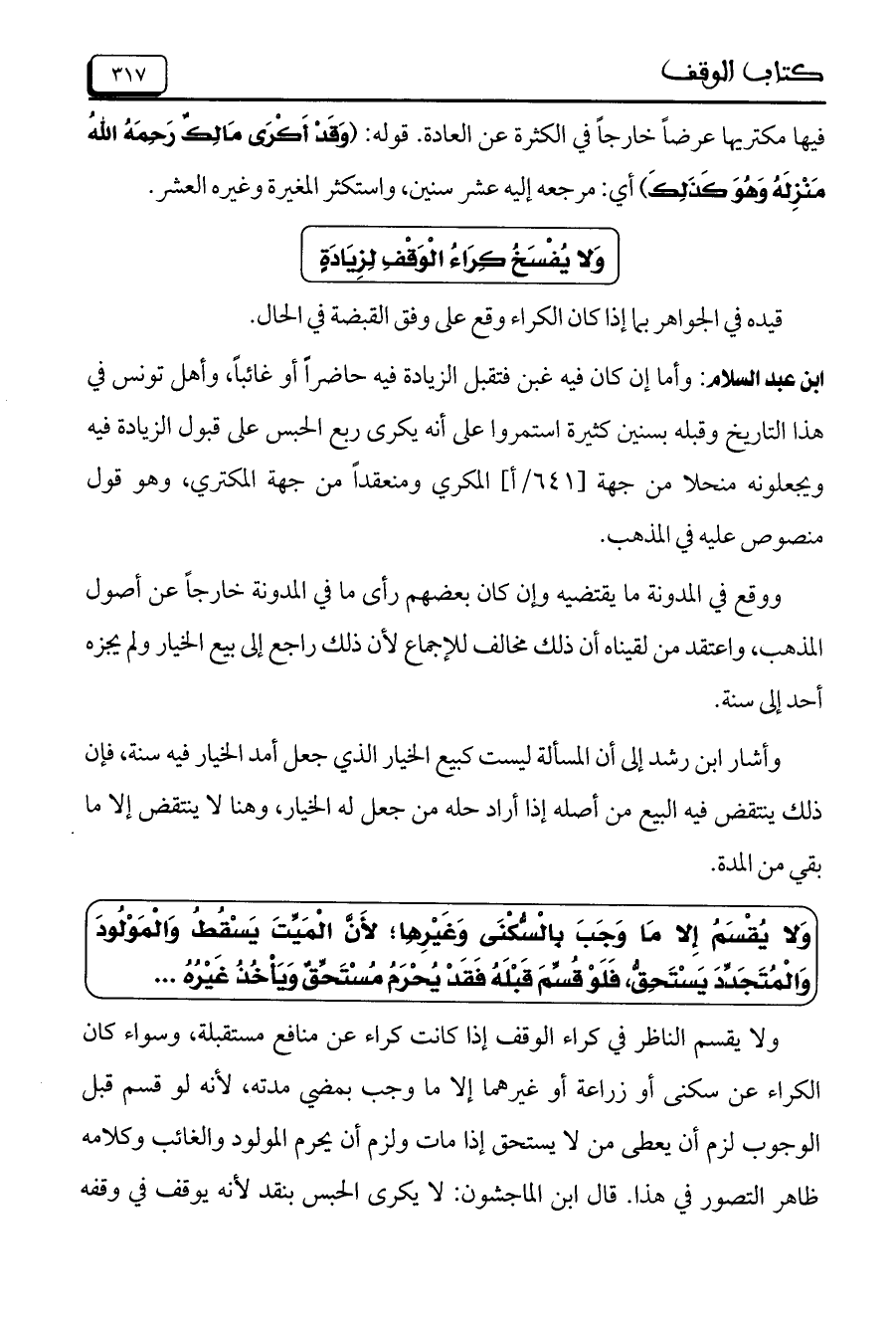 وَلا يُفْسَخُ كِرَاءُ الْوَقْفِ لِزِيَادَةٍ