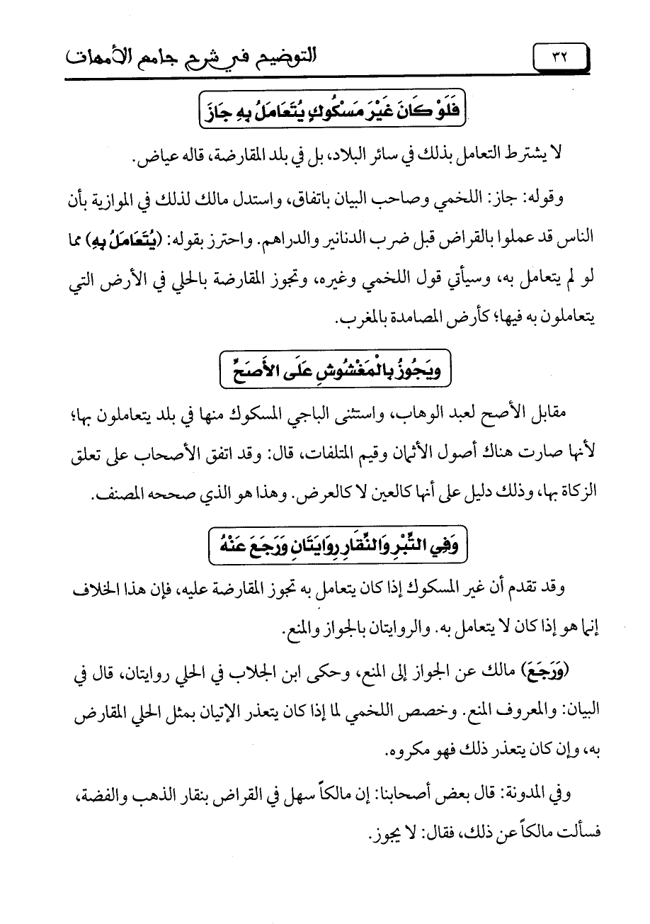 وقد تقدم أن غير المسكوك إذا كان يتعامل به تجوز المقارضة عليه، فإن هذا الخلاف إنما هو إذا كان لا يتعامل به. والروايتان بالجواز والمنع.