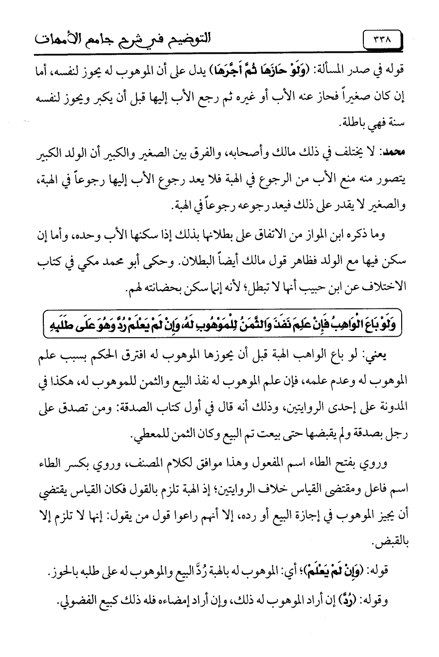 قوله: (وَإِنْ لَمْ يَعْلَمْ)؛ أي: الموهوب له بالهبة رُدَّ البيع والموهوب له على طلبه بالحوز.