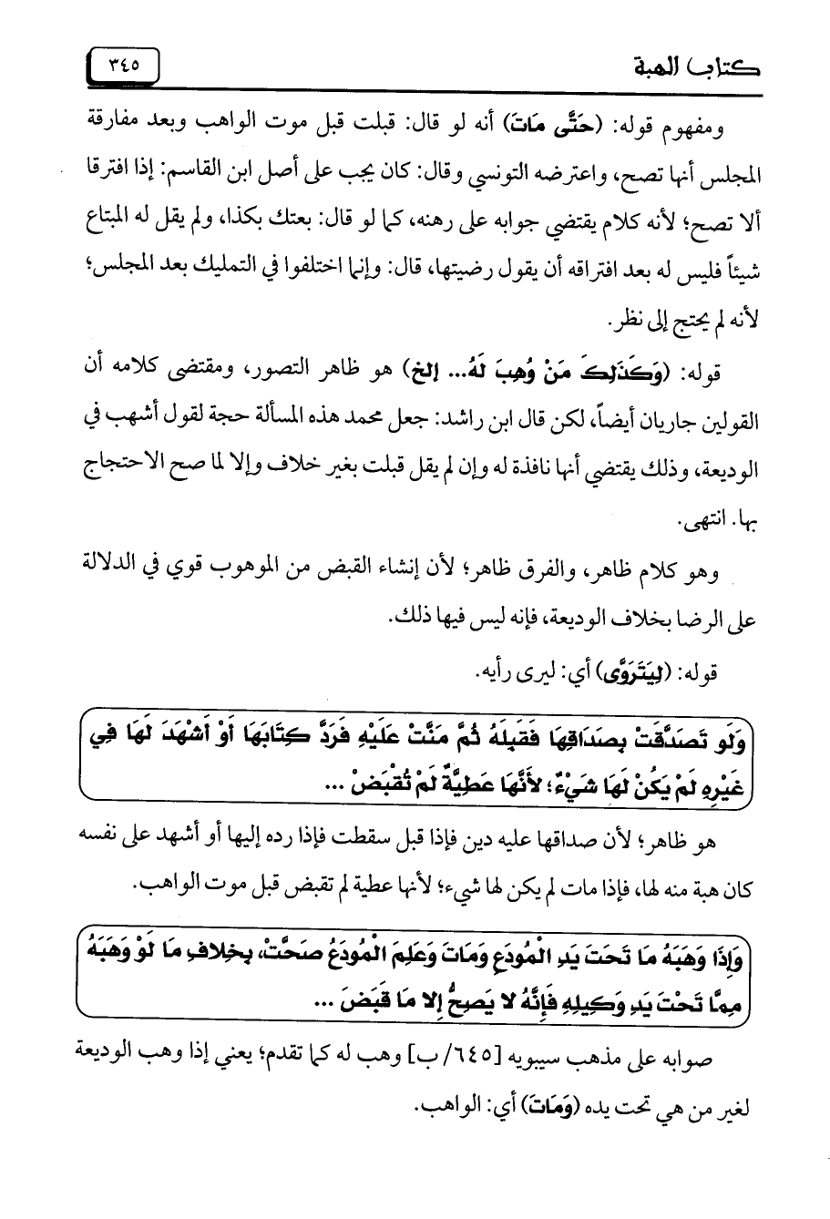 ومفهوم قوله: (حَتَّى مَاتَ) أنه لو قال: قبلت قبل موت الواهب وبعد مفارقة المجلس أنها تصح، واعترضه التونسي وقال: كان يجب على أصل ابن القاسم: إذا افترقا ألا تصح؛ لأنه كلام يقتضي جوابه على رهنه، كما لو قال: بعتك بكذا، ولم يقل له المبتاع شيئاً فليس له بعد افتراقه أن يقول رضيتها، قال: وإنما اختلفوا في التمليك بعد المجلس؛ لأنه لم يحتج إلى نظر.
