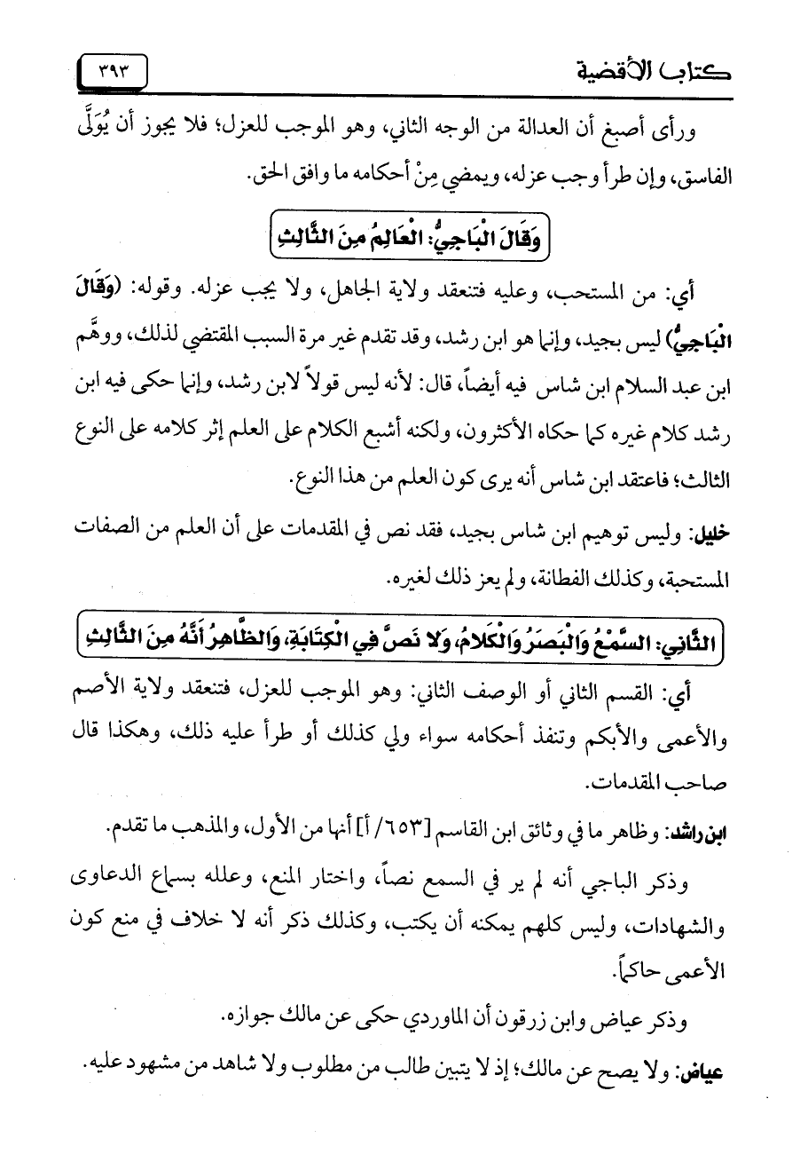 وَقَالَ الْبَاجِيُّ: الْعَالِمُ مِنَ الثَّالِثِ