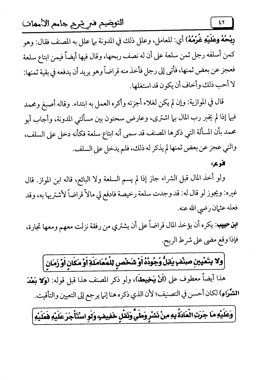 ابن حبيب: يكره أن يؤخذ المال قراضاً على أن يشتري من رفقة نزلت معهم ومعها تجارة، فإذا وقع مضى على شرط الربح.