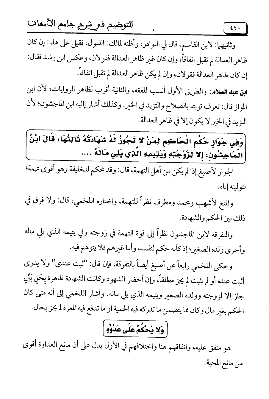 ابن عبد السلام: والطريق الأول أنسب للفقه، والثانية أقرب لظاهر الروايات؛ لأنابن المواز قال: تكعرف توبته بالصلاح والتزيد في الخير. وكذلك أشار إليه ابن الماجشون؛ لأن التزيد في الخير لا يكون إلا في ظاهر العدالة.