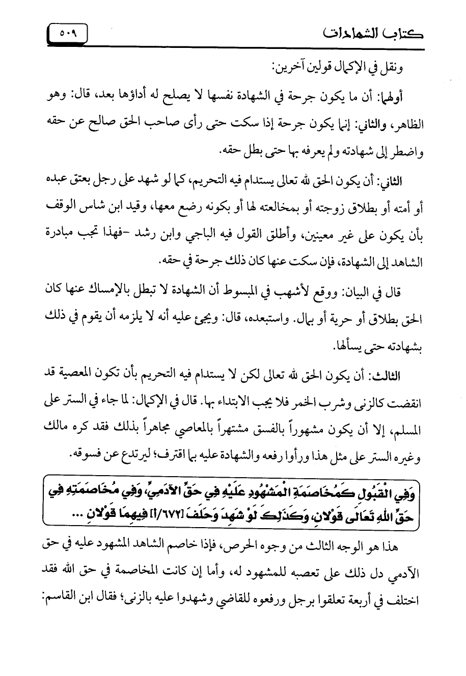 الثاني: أن يكون الحق لله تعالى يستدام فيه التحريم، كما لو شهد على رجل بعتق عبده أو أمته أو بطلاق زوجته أو بمخالعته لها أو بكونه رضع معها، وقيد ابن شاس الوقف بأن يكون على غير معينين، وأطلق القول فيه الباجي وابن رشد- فهذا تجب مبادرة الشاهد إلى الشهادة، فإن سكت عنها كان ذلك جرحة في حقه.