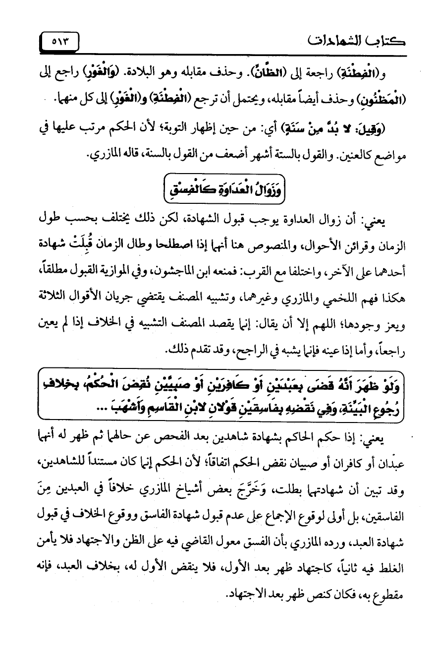(وَقِيلَ: لابُدَّ مِنْ سَنَةٍ) أي: من حين إظهار التوبة؛ لأن الحكم مرتب عليها في مواضع كالعنين. والقول بالستة أشهر أضعف من القول بالسنة، قاله المازري.