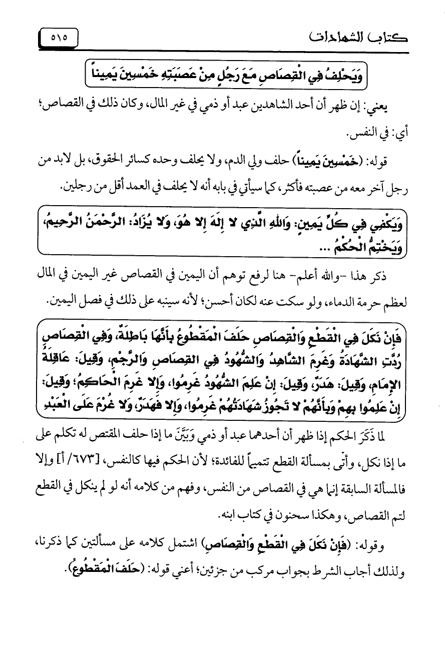 وَيَحْلِفُ فِي الْقِصَاصِ مَعَ رَجُلٍ مِنْ عَصَبَتِهِ خَمْسِينَ يَمِيناً
