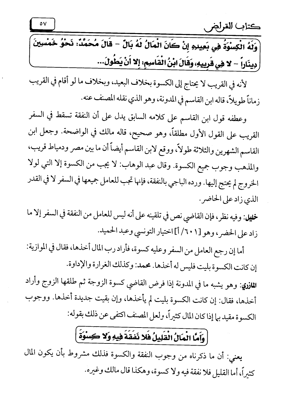 يعني: أن ما ذكرناه من وجوب النفقة والكسوة فذلك مشروط بأن يكون المال كثيراً، أما القليل فلا نفقة فيه ولا كسوة، وهكذا قال مالك وغيره.