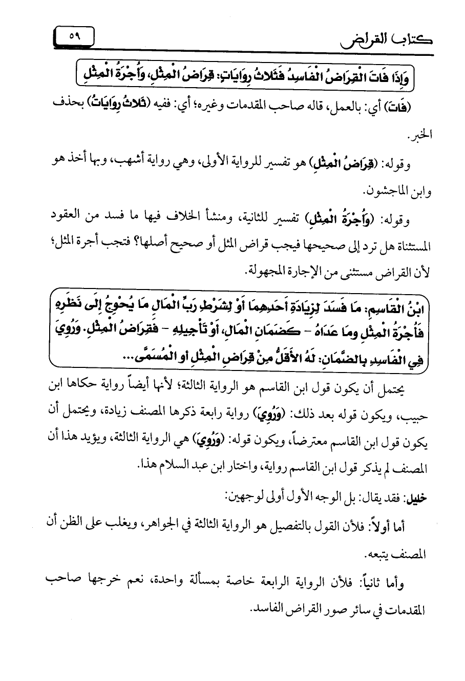 وقوله: (قِرَاضُ الْمِثْلِ) هو تفسير للرواية الأولى، وهي رواية اشهب، وبها أخذ هو وابن الماجشون.