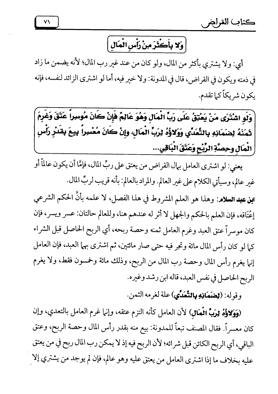 وَلا بِأَكْثَرَ مِنْ رَاسِ الْمَالِ